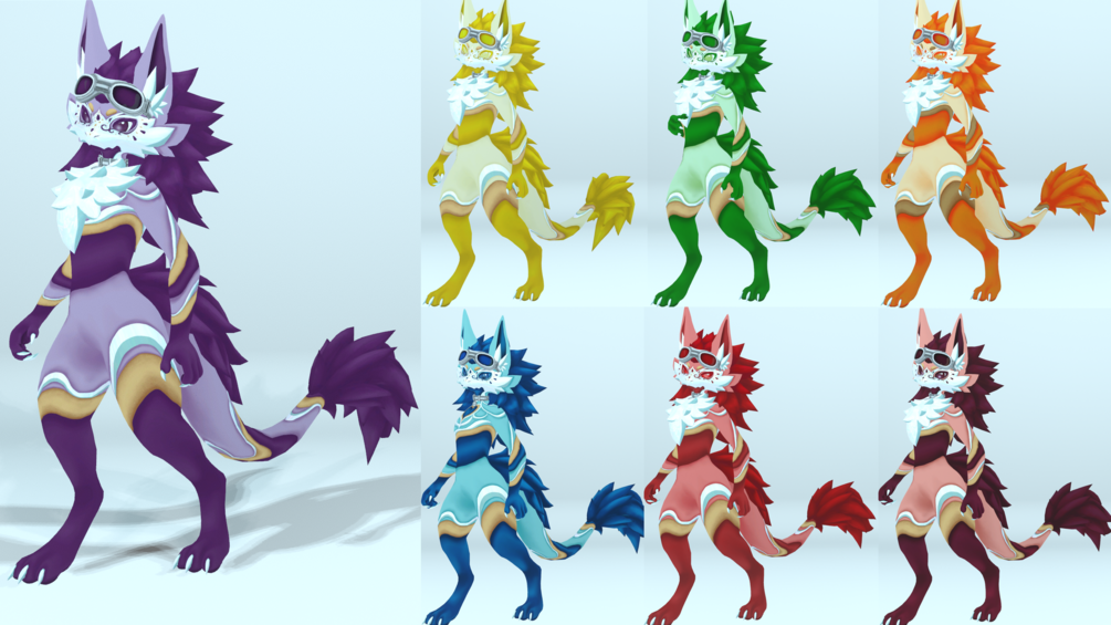 - Textures files: base body, eyes, fluff, grab-pass & emission mask, subsurface scattering mask